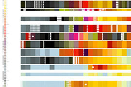 How are you feeling today - exactly? Cinthia Wen, the creative director at Noon, tackled this question scientifically in 504 Hours, a poster she donated to an AIGA benefit auction of works on the theme "Within Four Walls." She says, "For me, it was about the effects of city living. Since I like psychology, I documented my mood for 21 days by the hour, and then I color-coded them and created the poster out of it. "Each horizontal bar is a day," Wen continues. "Blue is when I'm calm - asleep, mainly. Black is when I'm not so happy. And then there's agitation. There's a legend to the left, so you can chart how I did. I also had little symbols: days when I had a revelation, and days when I drank too much." Wen made notes hourly on a scratchpad; the visualization of the notes came later. "How do you turn things you can't visualize - such as time, mood, and space — into tangible, visible ideas?" Wen asks. "Because you live life every day, you can't visualize your time. When you look at this, it feels like it's all about color — just color stripes. But when you look at it from afar, there's a certain pulse to it." Jude Stewart, Step Magazine Noon